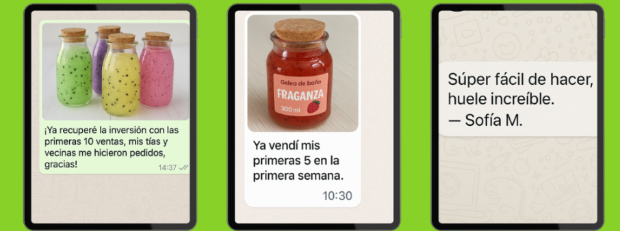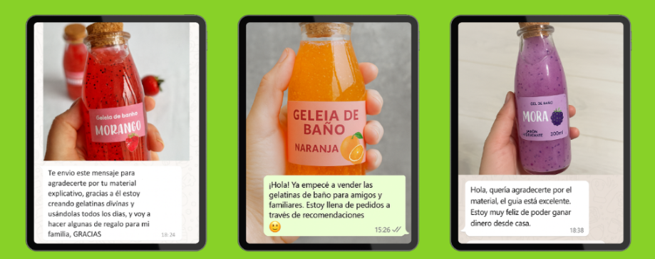 Aunque nunca hayas hecho cosmética antes, vas a descubrir cómo transformar ingredientes simples en geleas de baño increíbles — perfectas para vender, hacer regalos especiales o disfrutar tu propio momento de spa en casa.